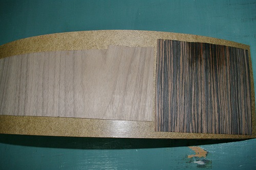 準備したのは、表面を曲げたハードボードとウォルナットベニアと黒檀ベニアです。