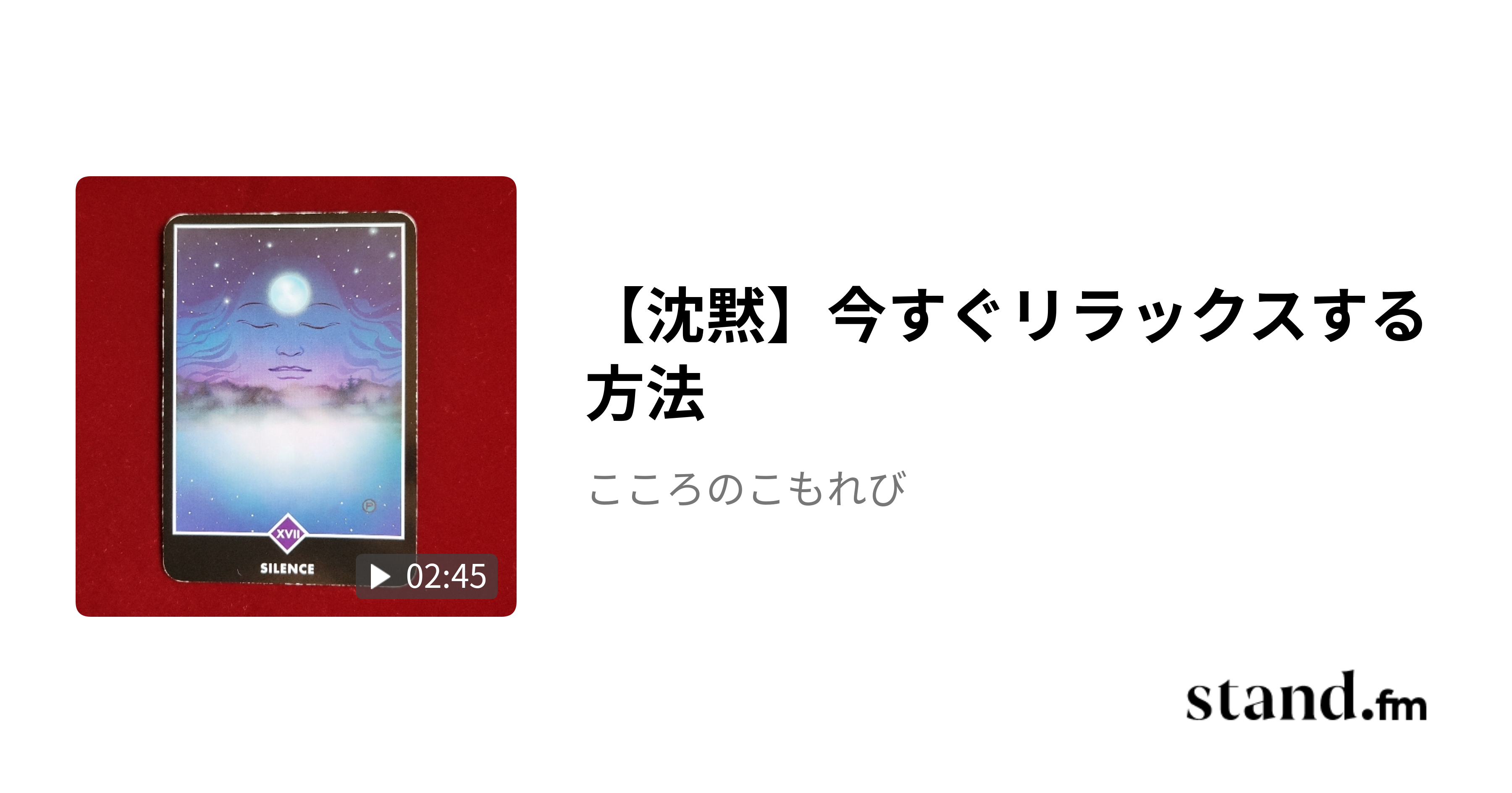 【沈黙】今すぐリラックスする方法 - こころのこもれび | stand.fm禅タロットカード「沈黙」について、感じたことをお話しています。 #こころのこもれび #禅タロットカード #カードリーディング #スピリチュアルメッセージ #沈黙 #リラックス #何もしない #安心 #安心感 #思考 #思考を止める stand.fm