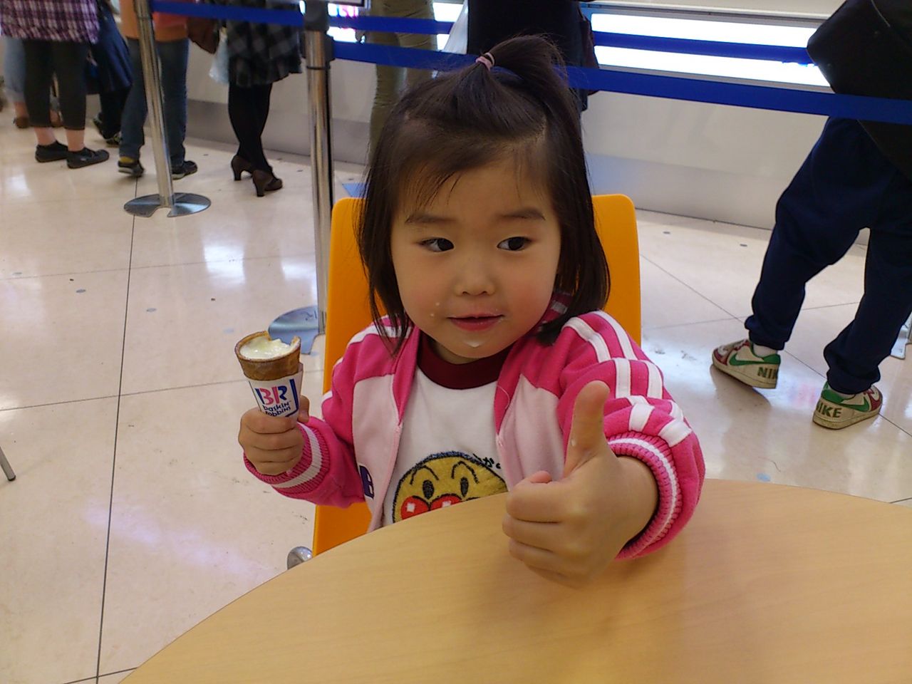 可愛い主張を聞き入れ、コーンを買うことにしました。
