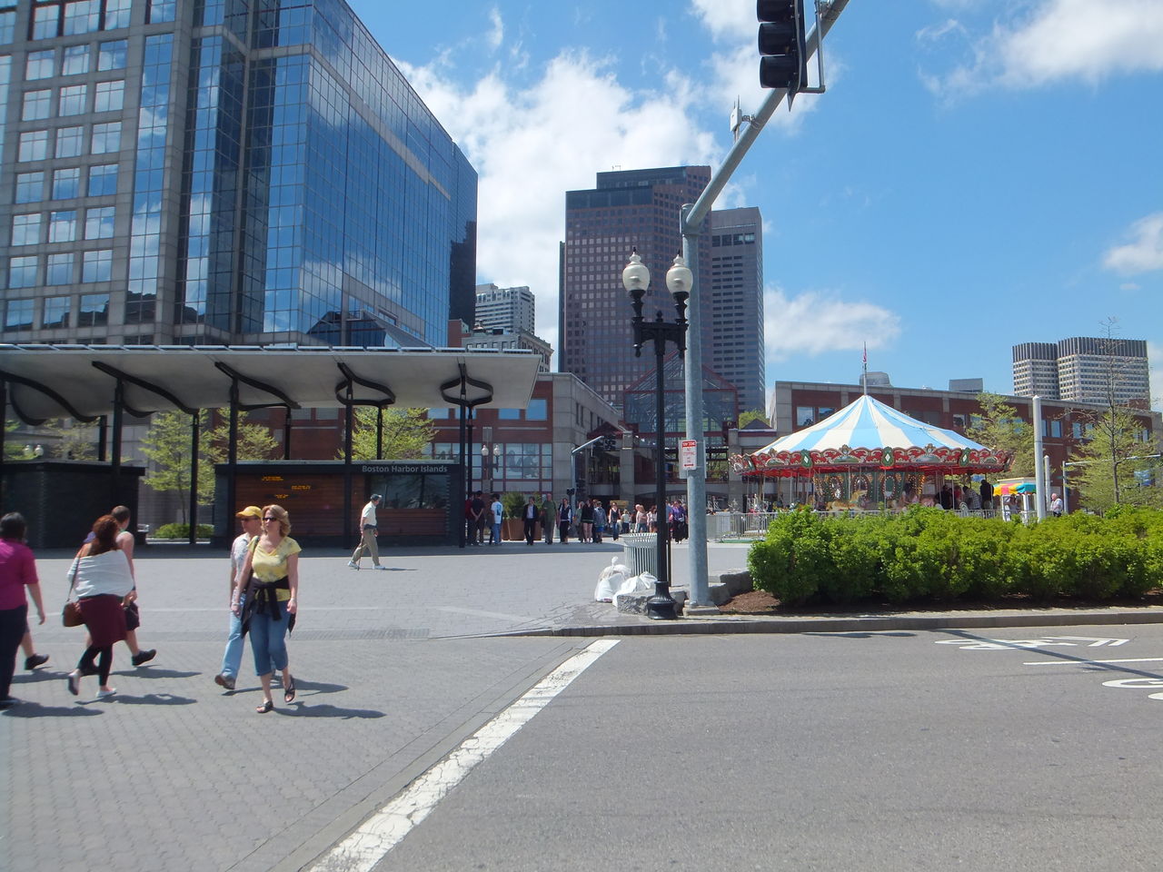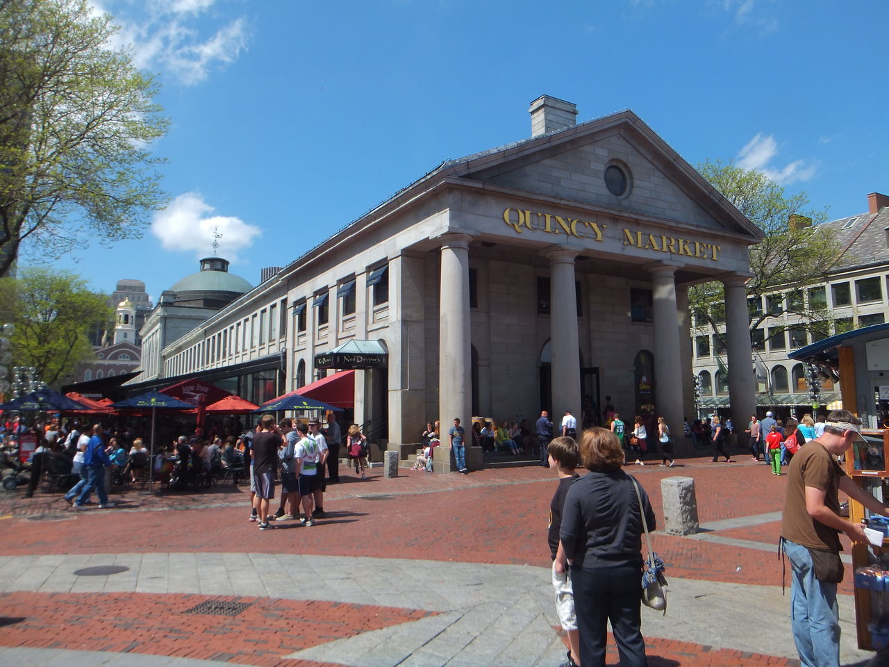 昼休みの時間帯になると、ダウンタウンで働く人たちが昼食を取りにQuincy Marketに集まってくる、とか。