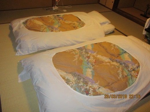部屋に帰るから布団が敷かれていました。