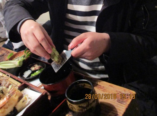 (와사비는 강판에 갈아서 먹습니다.)