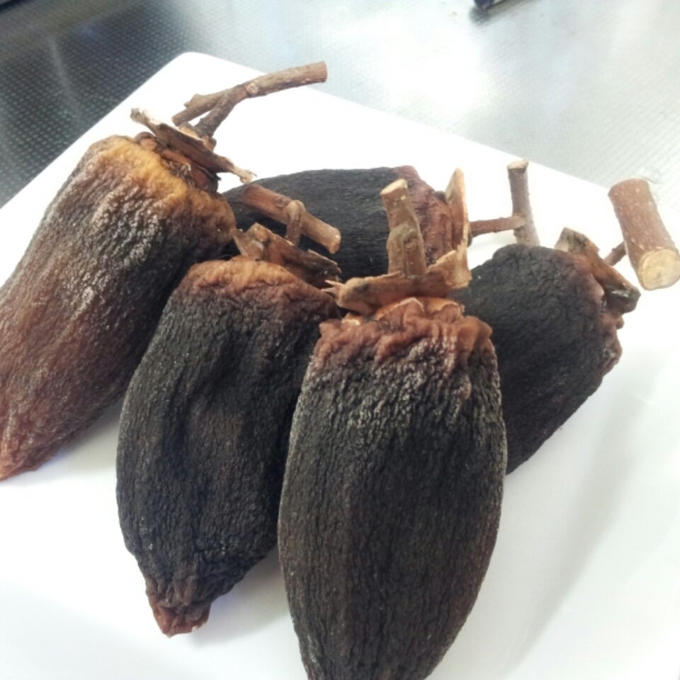 固くなっちゃった干し柿のヘタの部分を取り平たくする