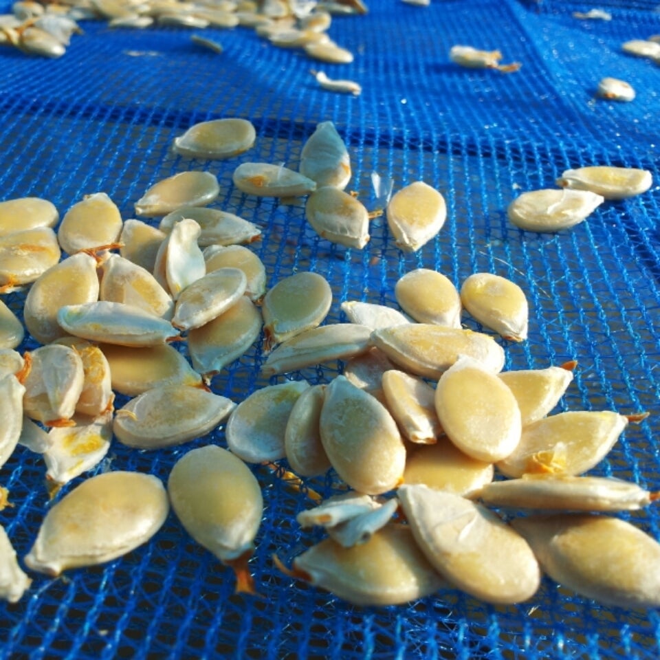 カボチャの種を干す。2、3日