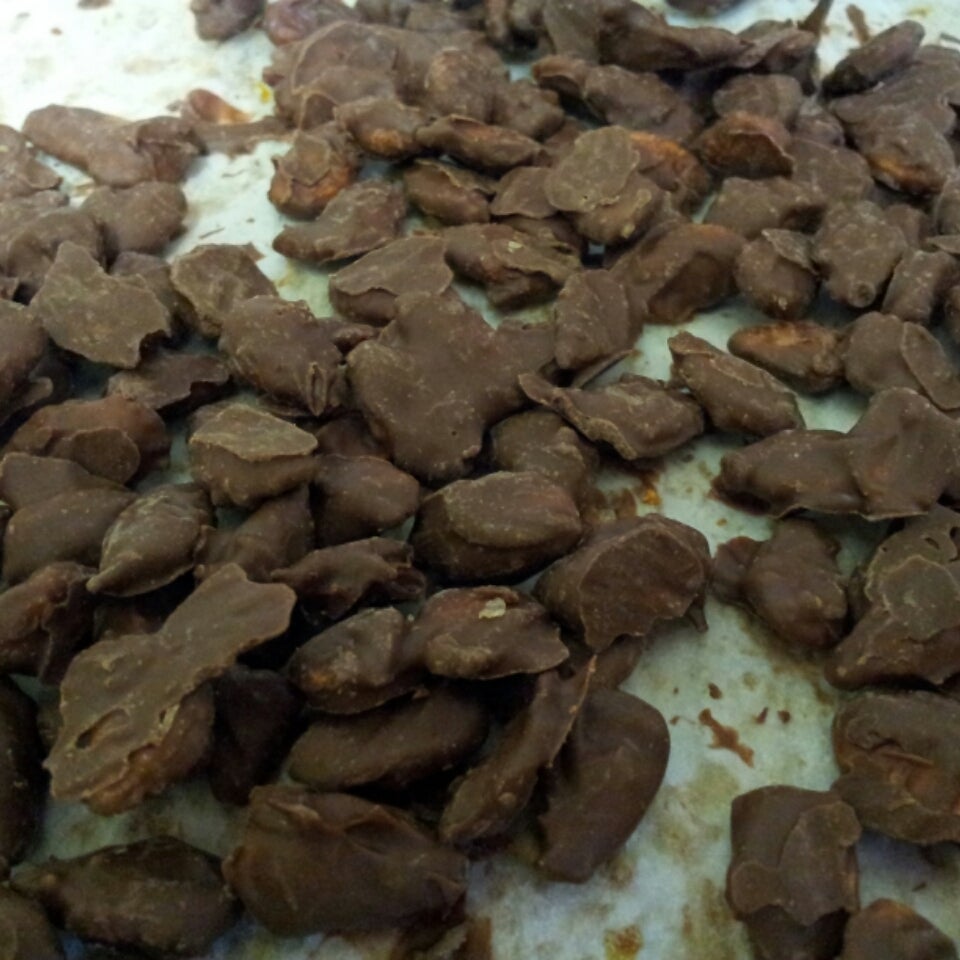 板チョコを湯煎にかけてそのなかにカボチャの種をいてチョコと絡ませる。