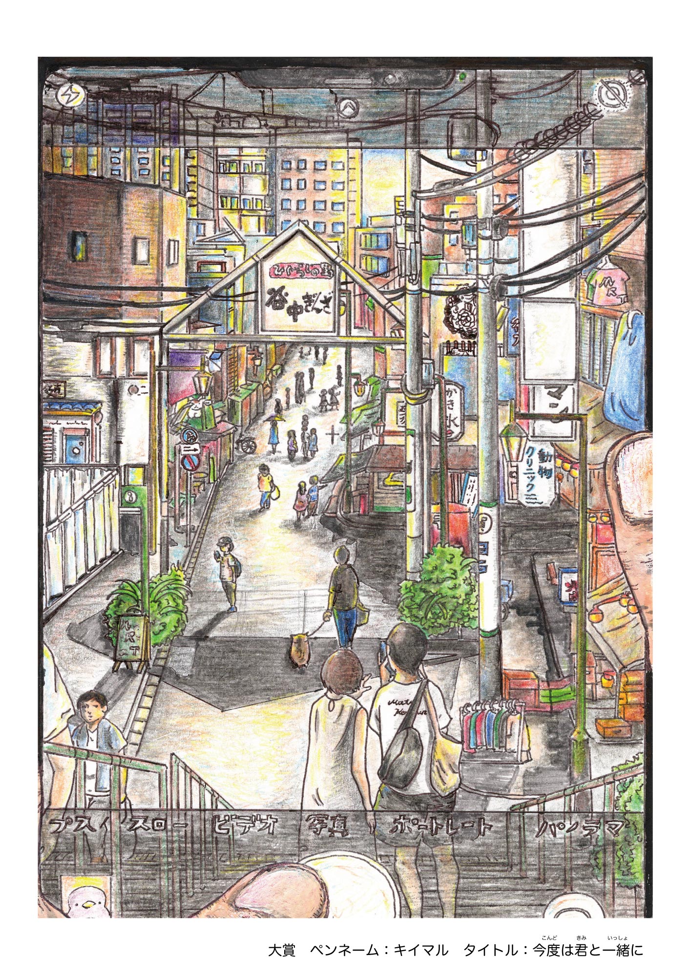 私は大好きな日暮里の谷中銀座を描きました![]()