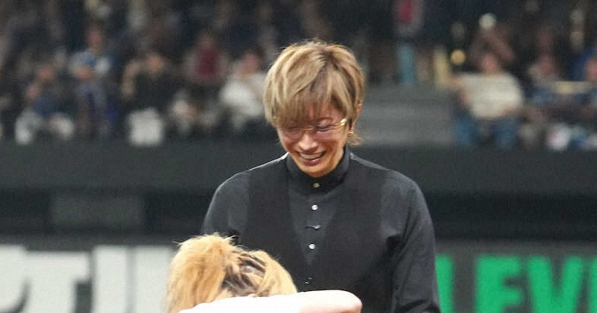 ファーストピッチには #GACKT さんが登場。サプライズで #鬼龍院翔 さんが乱入し、まさかの展開に。会場はどよめき盛り上がりました!#lovefighters pic.twitter.com/fXaW5piGPh