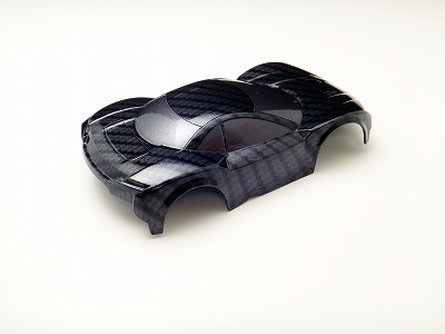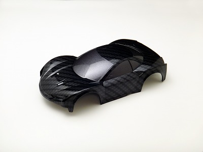 ボディのベースカラーはダークシルバー(いわゆるガンメタ)で塗装しております。CB05は半透明ですがカーボンパターンをブラックで印刷しておりますのでベースカラーはシルバーやグレー系がオススメです!!