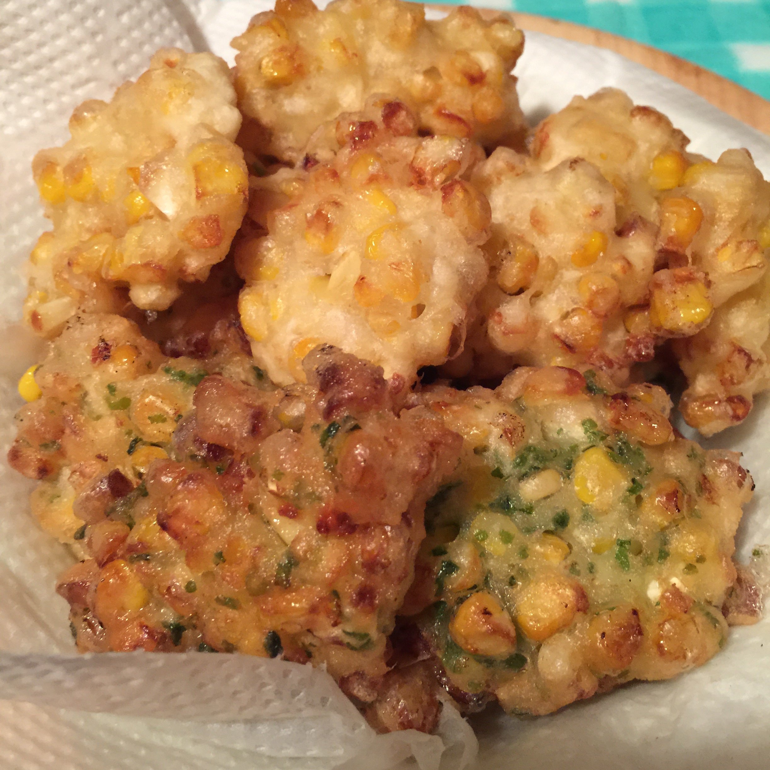 薄力粉、水、塩を混ぜ合わせとうもろこしを入れ再度混ぜる
