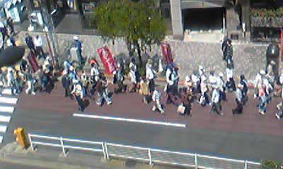平日の昼の日中に、大声だして、行進して、歌を歌って。
