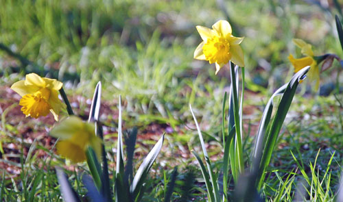 こちらは水仙の花が綺麗に咲いていました。黄色の花弁が陽に照らされて輝いていました。