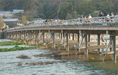 対岸から渡月橋 を眺めた様子です。