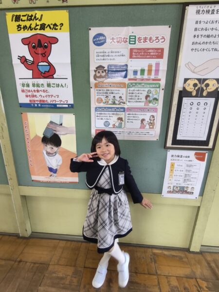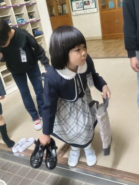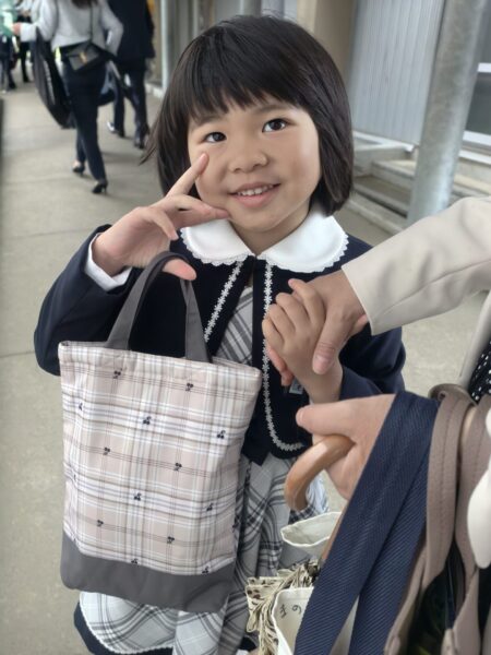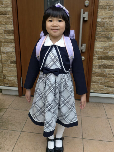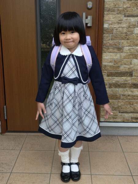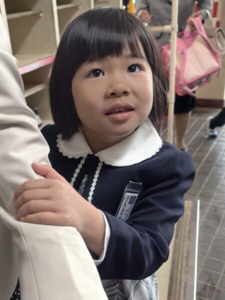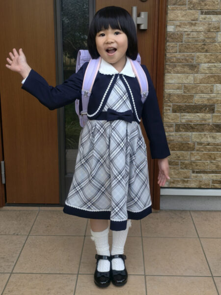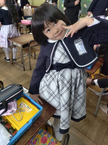 こちらは小学校に到着したばかりでママと一緒のところ。