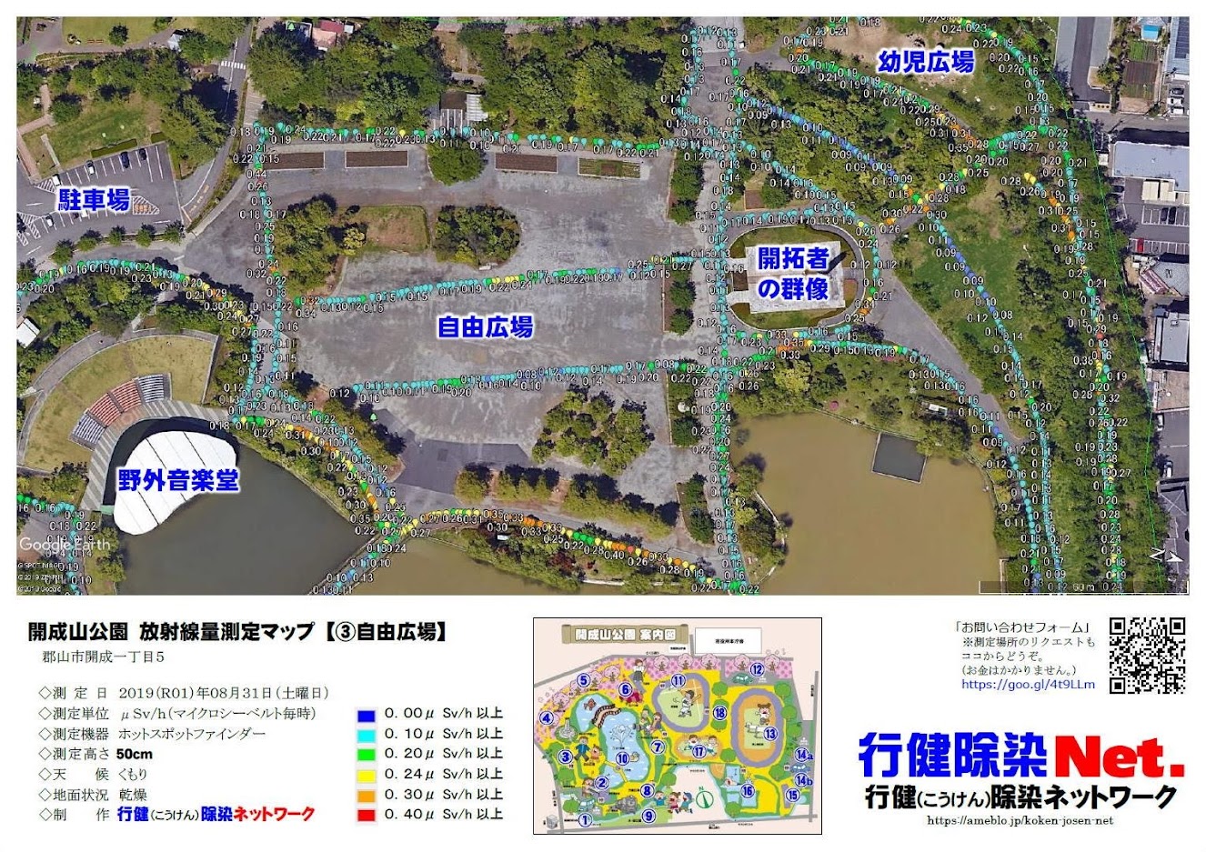 「開成山公園」(郡山市)の放射線量をはかりました。