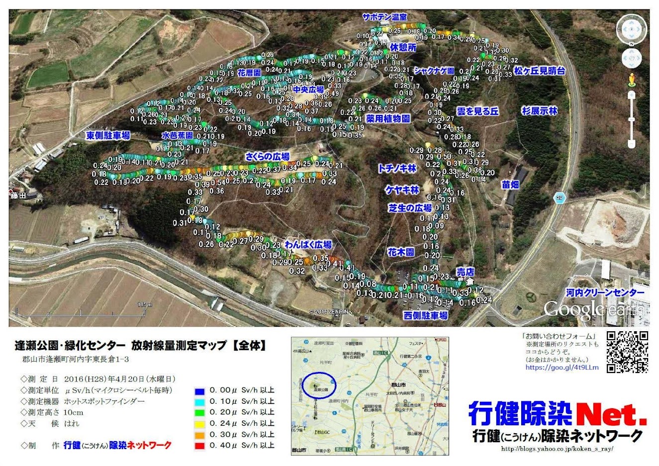 「逢瀬公園」(郡山市逢瀬町河内)の放射線量をはかりました。(過去のデータも掲載。)
