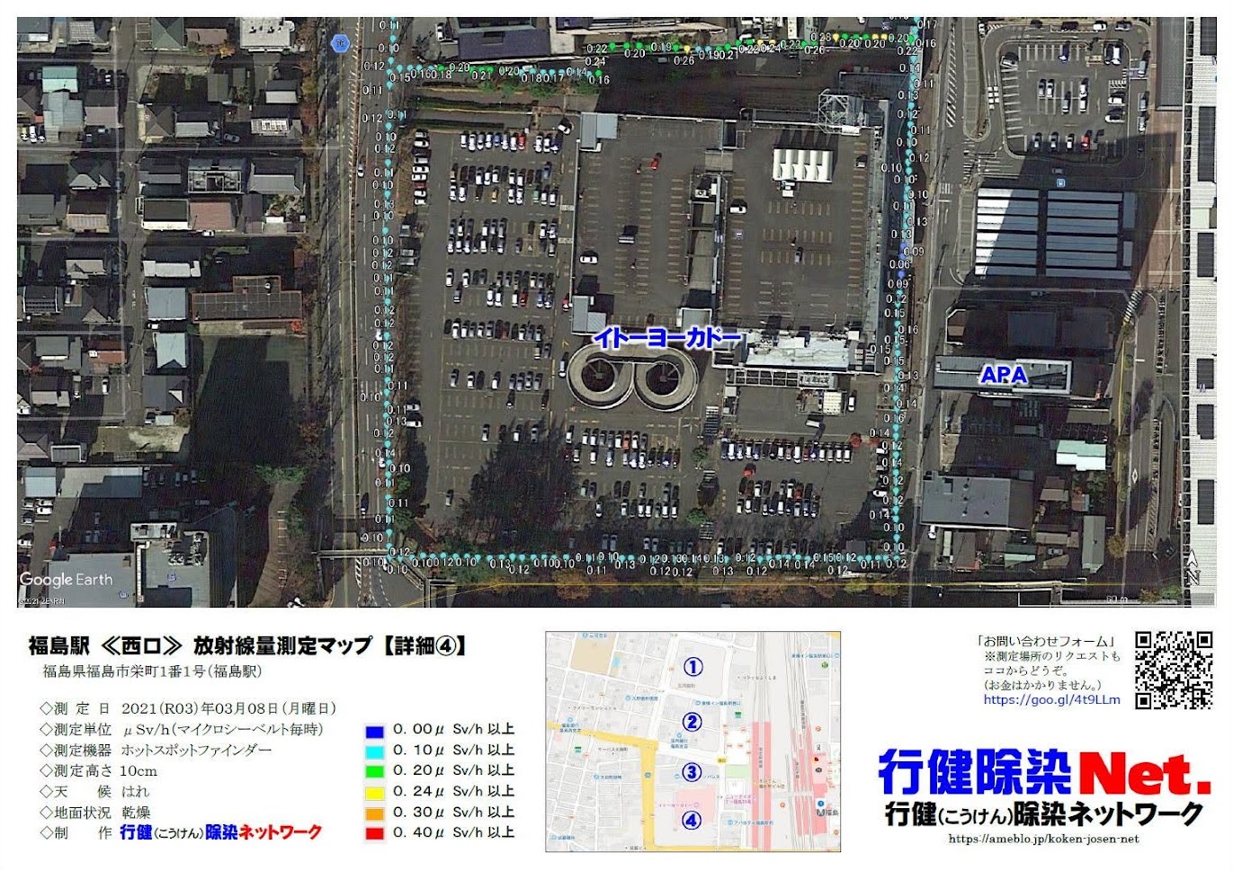 「福島駅西口」(福島市)の放射線量をはかりました。