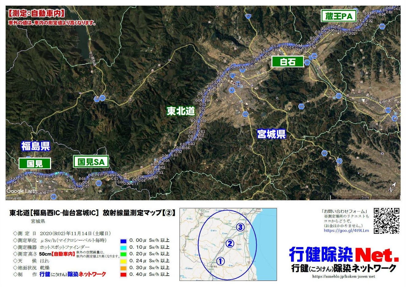 「東北道『蔵王PA』(宮城県蔵王町)」放射線量マップ←09/10(金)アップ