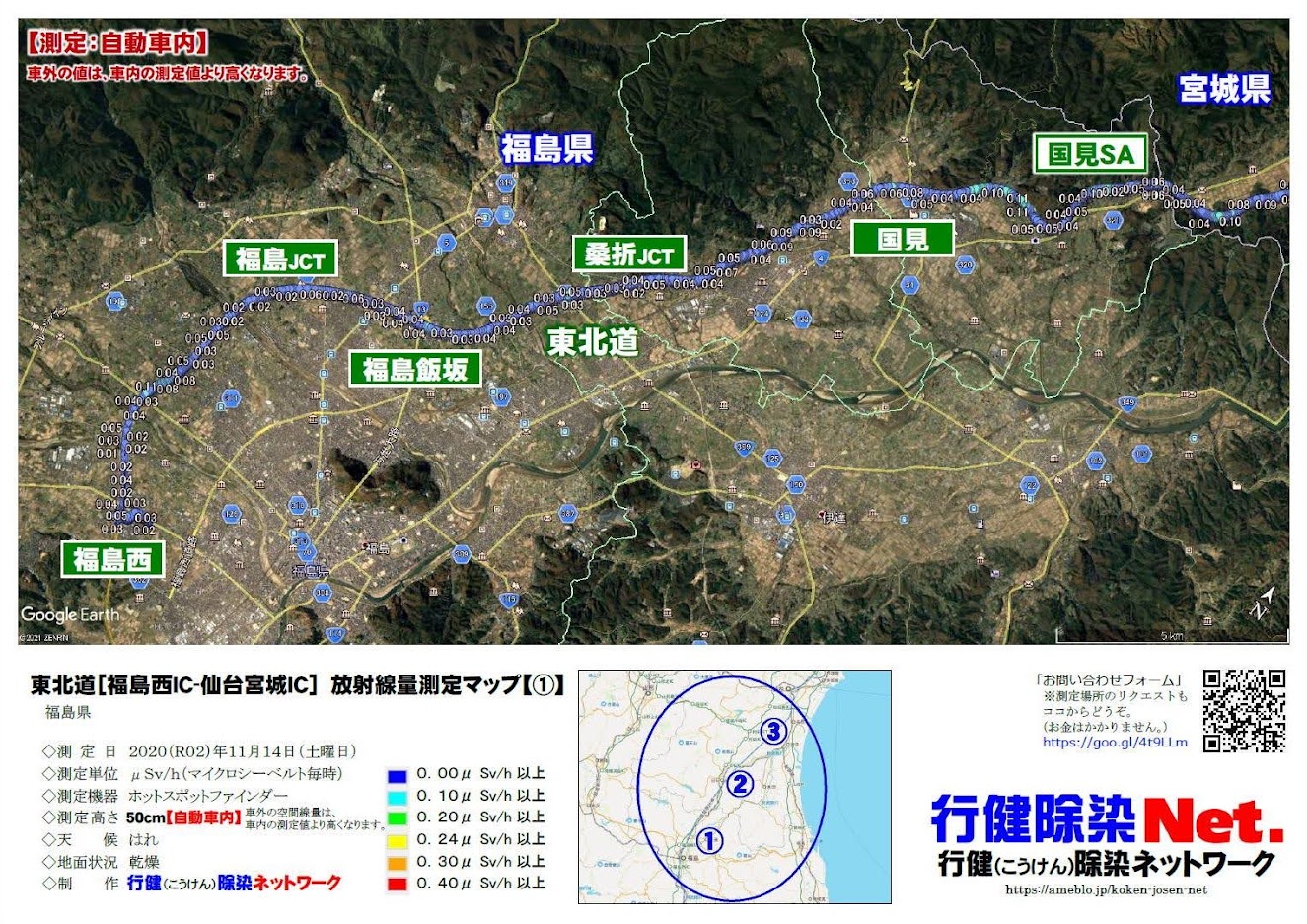 「東北道[福島西IC-仙台宮城IC]」(福島県・宮城県)の放射線量をはかりました。