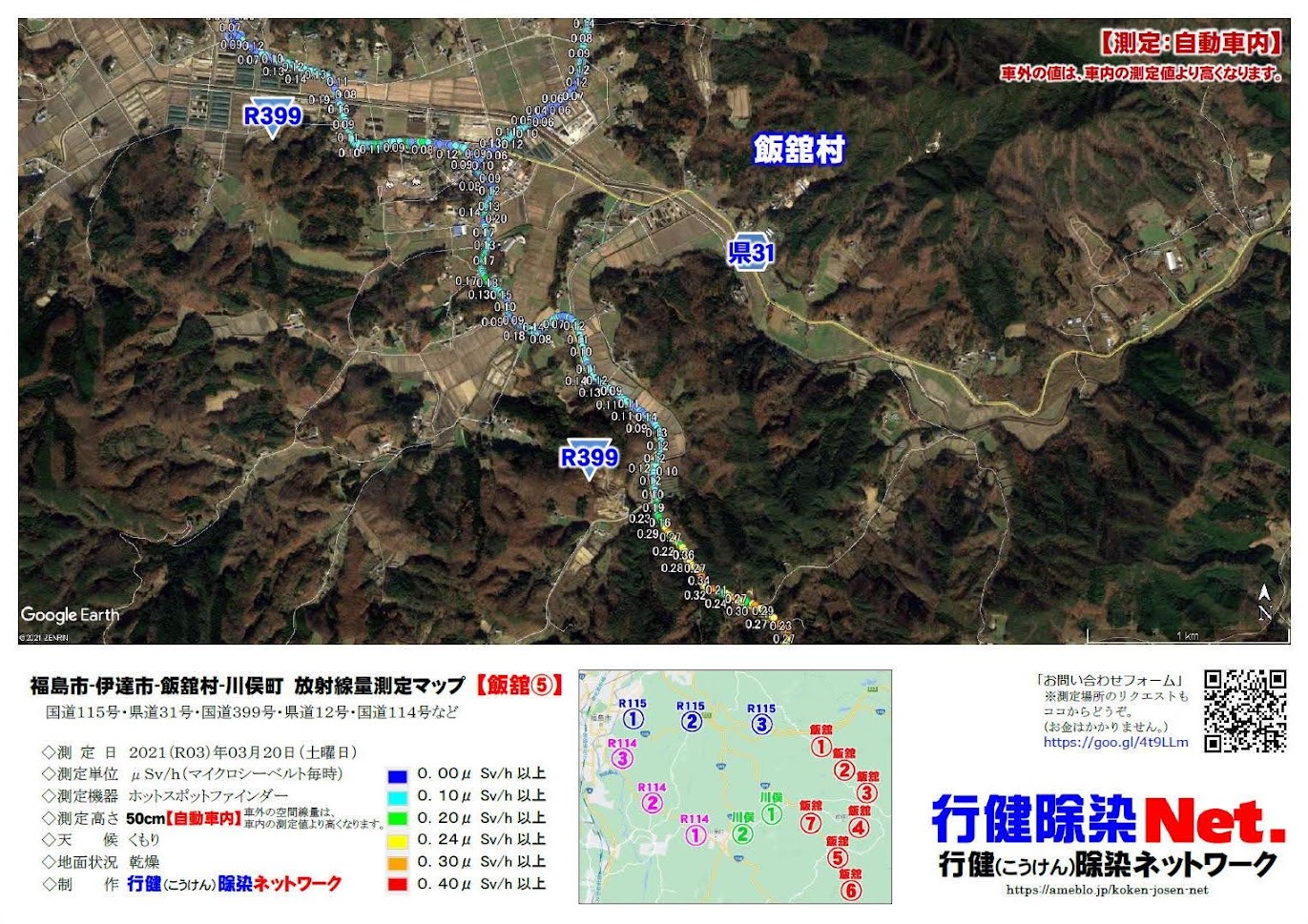 「国道115号・県道31号・国道399号・県道12号・国道114号」(福島市・伊達市・飯舘村・川俣町)の放射線量をはかりました。