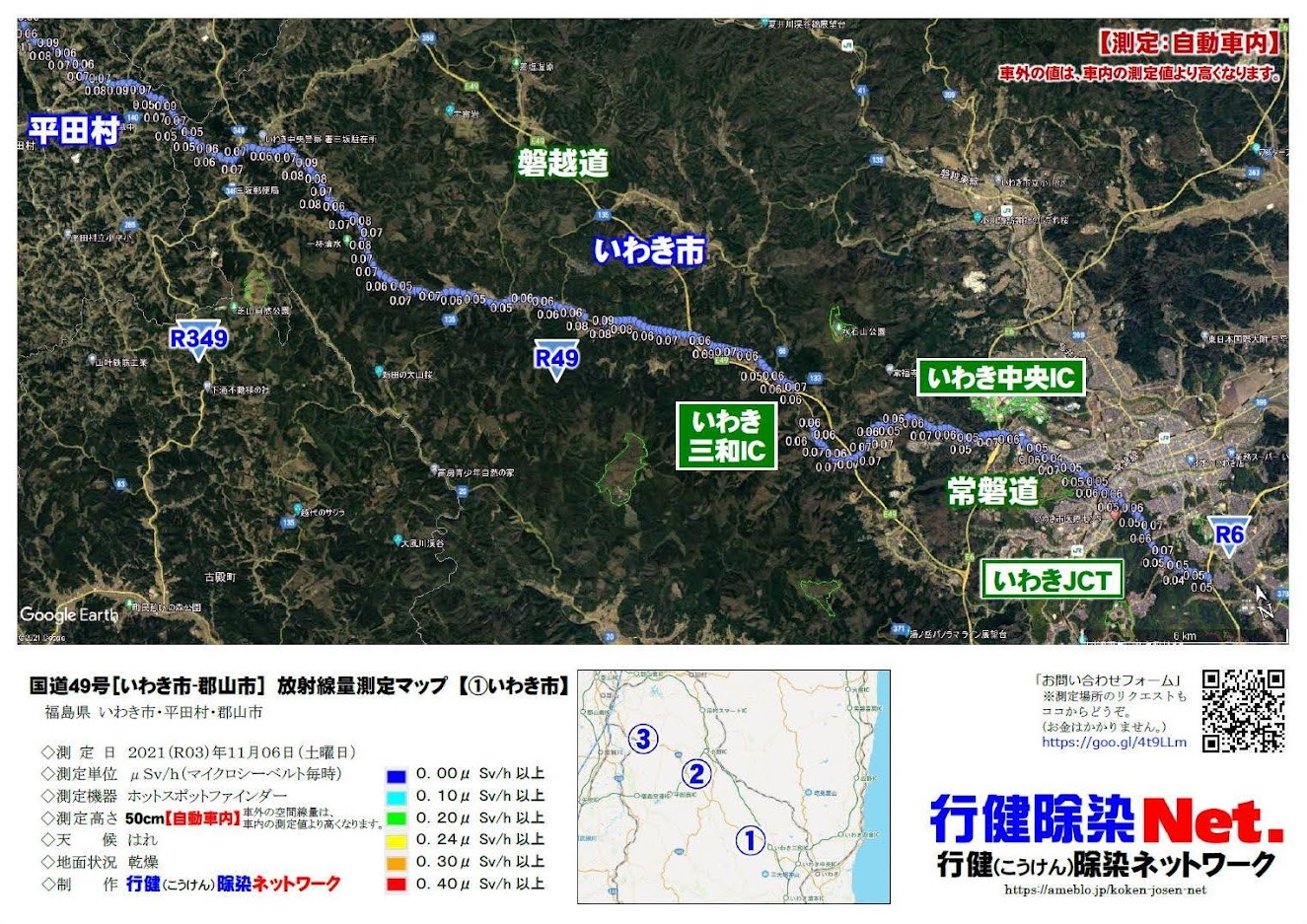 「国道49号(いわき市-平田村-郡山市)」の放射線量をはかりました。