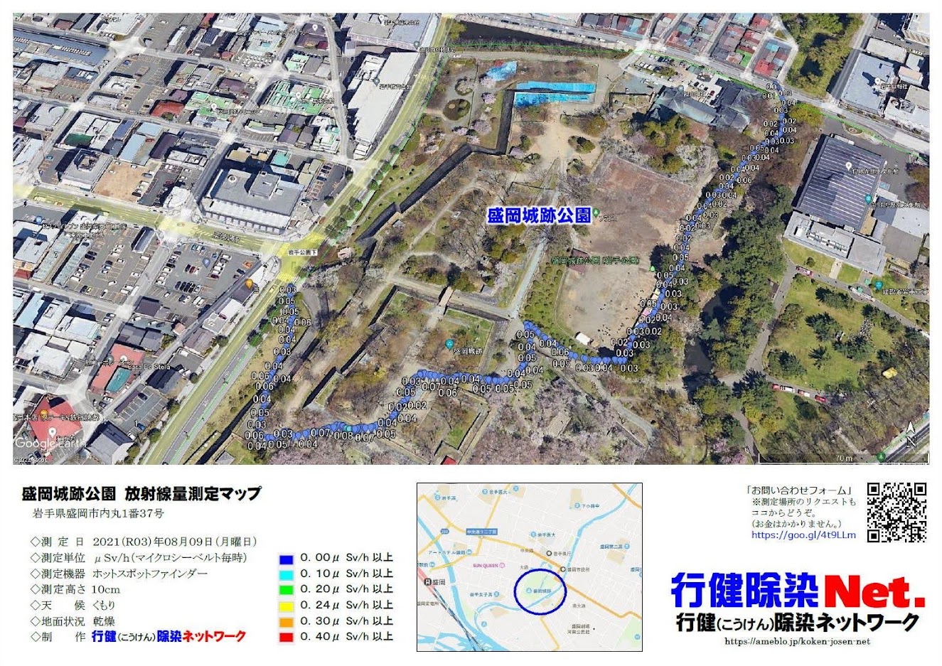 「盛岡城跡公園」(岩手県盛岡市)の放射線量をはかりました。