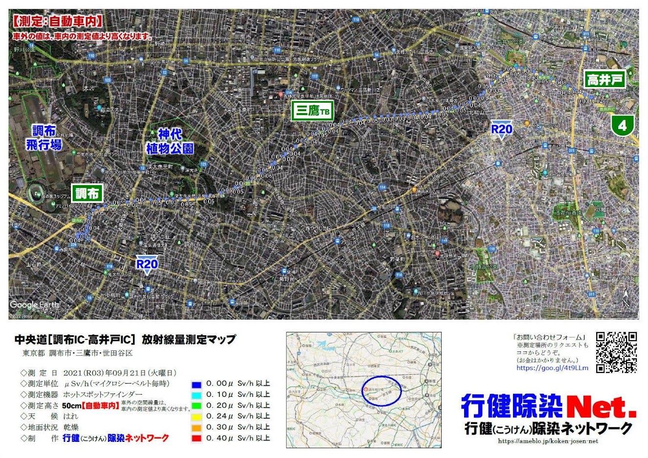 We measured the radiation dose on the Chuo Expressway from the Chofu IC to the Takaido IC.
