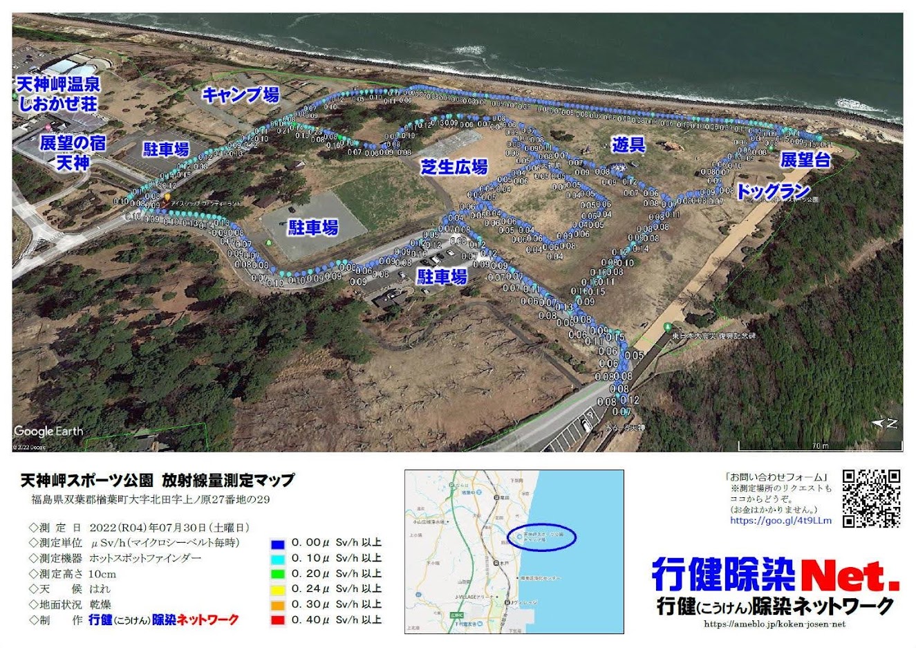 We measured the radiation dose at Tenjinmisaki Sports Park in Naraha-machi, Futaba-gun, Fukushima Prefecture.