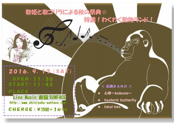 2016/9/17(土) 11:30 11:45 ¥1500+1drink Live Music 新宿SUNFACE |