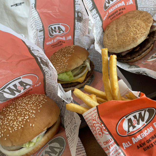 ランチに行こうと思ってたハンバーガー屋さんが大行列で諦めて名護のA&Wへ。