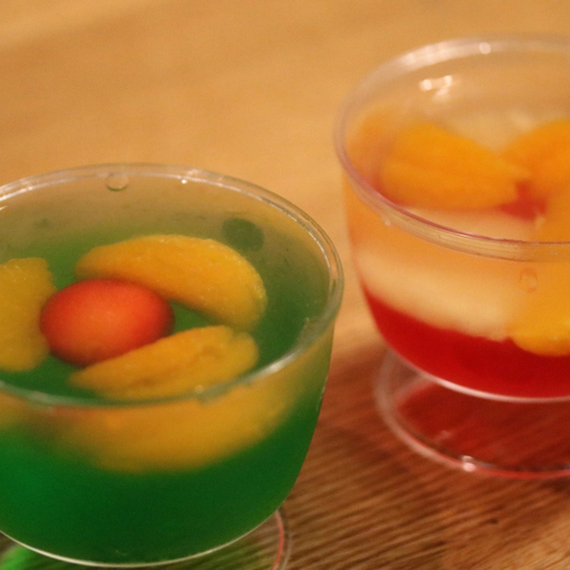 ゼラチンではなく、寒天のしっかりしたゼリーでしたよ