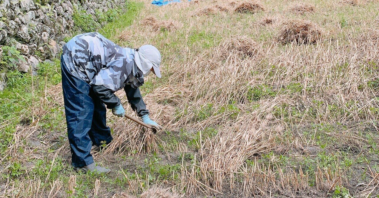 機械での収穫を諦め、手作業での刈り取りとなりました。