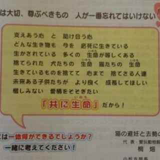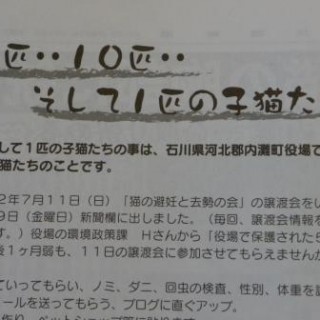 猫の避妊と去勢の会 会報ができました!!ご無沙汰してました。「猫の避妊と去勢の会」の初めて(=⌒▽⌒=) の「会報」ができました! ず~と「会報」作りにたずさわっていましたら、ブログが 更新出来ませんでした。 言い訳して申し訳ありません。(((( ;°Д°)))) タイトルは {猫の避妊と去勢の会 cat-kanazawa ニュース} です。これから、年1回は発行していきたいと考えており ます。 第1回目と云うことで、活動報告も初めてのパネル展か ら全て書かせて頂きました。(*´σー`) また、「会」手作りの「紙芝居」活動も盛り込みました。 今年・平成22年2月24日25日に「熊本市動物愛護セ ンター」へ視察にいってきたこと! 地域猫作りの大切さ そして、それらの広報活動がいか に重要なことなのか!(・ε・) また、安易に猫を捨てるということは、その命がどの様 な結末を迎えることになるのか! 不妊手術の大切さ!を 一刻でも早く 多くの方々に知 らせること。 それらを盛り込んだ会報誌となり、全 30ページ となりました。その一部をお見せいたします。 cat-kanazawa ニュース 初めての「会報」VOL.1 の表紙! 1ページ目・2ページ目(紙芝居活動・パネル展のこと) 熊本市動物愛護センターの取り組み・殺処分ゼロを目指してを視察 「変わる動物行政!変われる動物行政」 生命は大切、尊ぶべきもの 人が一番忘れてはいけない心は・・ 内灘町役場での子猫の遺棄事件!! 5匹・・10匹・・そして1匹の子猫たち・・・
