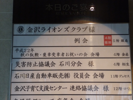石川県金沢市の 「金沢ライオンズクラブの例会」 に呼ばれまして、