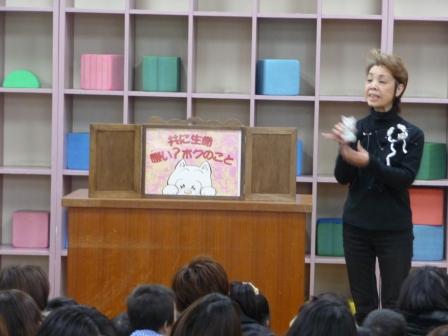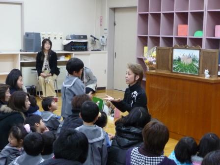 12月18日 保育園で「紙芝居」をしてきました!12月18日(土曜日)朝10時30分から、 石川県金沢市内の保育園にて「紙芝居」をしてきました。 園児・・(未満児・年少さん・年中さん・年長さん・・) そして保護者の方たち。 園児は80名 保護者は100名とお聞きいたしました。 保育園のホールには沢山の園児と保護者の方たちで一杯です。 「おはようございます」と大きな声で迎えていただきました。 自作の《共に生命 嫌い?ボクのこと》と題した紙芝居が始まります。 その前に子ども達に 「生き物を飼っている人はいますか?」と質問・・・ すると 「さかなを飼っている」 「めだかを飼っている」と・・ 水槽での生き物を飼っている家庭が多かった。 これには少しビックリいたしました。 紙芝居は、だいたい15分から20分程度です。 (園児たちには、これ以上の時間は無理です。) 最後の一枚・・問いかけのところで・・・ 「さあー みんなの前にダンボール箱が出てきました。 みんなならどうするか お話してください?」 と質問いたします。 子ども達は可愛いですよ! そして、しっかりしていますよ! 一番先に手をあげてくれた子は5歳の男の子。 こんなに多くの皆さんの前で 手を挙げることができるのは「勇気」がいることです。 「ボクは中に猫がはいっていたら、かわいがる!」 そんなことを云ってくれます。ヾ(@°▽°@)ノ 大人はなかなか手が挙がりません。 言葉もでてきません。 (私も逆の立場になったら手も挙がらず、言葉もでないかもね!) その男の子の「発言」がキッカケで、 他のこどもたちもお話しをしてくれました。 園児たちは11時で退場、昼食となります。 保護者の方たちにはその場に残っていただき、 私のお話『いのち』について のお話を聞いていただきます。 約40分ていどですが・・・ 今まで、多くの子ども達から聞いた言葉・・(SOS) 実際に身近で起こったことなど・・ 猫 の いのち を通して・・(;´▽`A`` 「共に生きること」 等を お話しさせていただきました。 捨てるのは 大人・・ 大人の背中を見て 子は育ちます。 「生命は大切、尊ぶべき物」 人が一番忘れてはいけない“心”は 《支えあう心 と 助け合う心》 どんな生き物も 今 を 必死に生きている。 生かされている 多くの 生命 が等しくある。 多くの皆さんに迎えられました。 「生き物を飼っている子は?」 きんぎょ・・めだか・・ 動物の写真を見てもらいます。 「お祈り猫」も登場です。 始まり・・はじまり・・ 親子で真剣に・・・・ おばあさんのお説経・・・ 「ダンボールの問いかけ、5歳の男の子」 「3歳の女の子も・・・」 保護者だけで・・・ 皆さんに聞いていただきます。 「共命鳥」・・ぐみょうちょう 結構真剣にお話いたしましたよ! 最後は折り紙で・・犬・・猫・・を作ります。