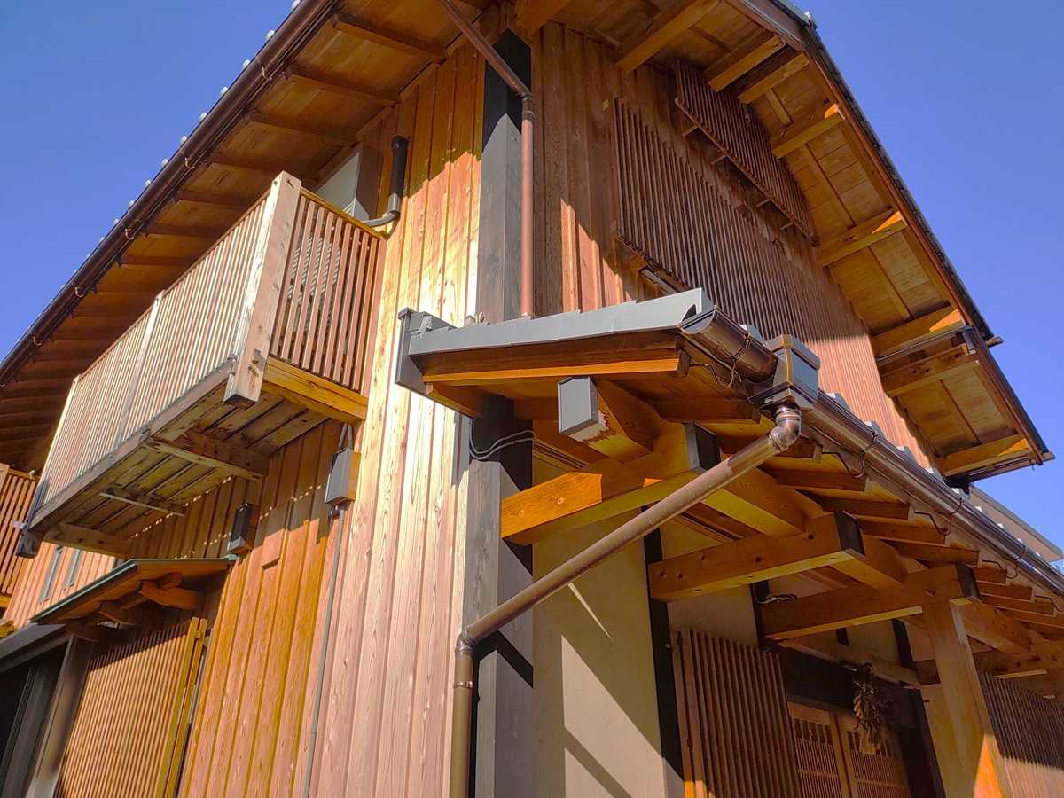 今日あらためて無垢無塗装の杉板外壁を眺めてみると、