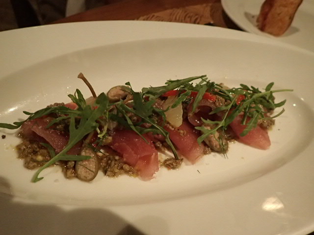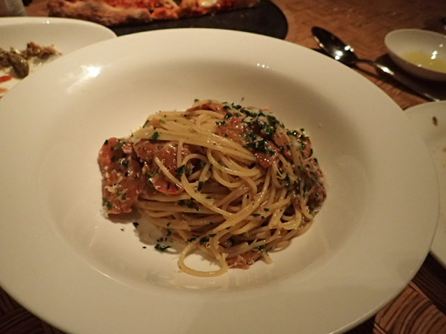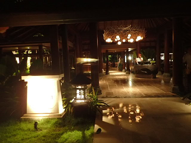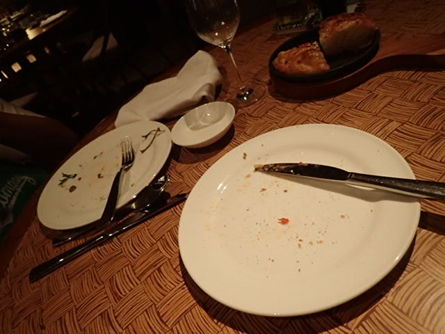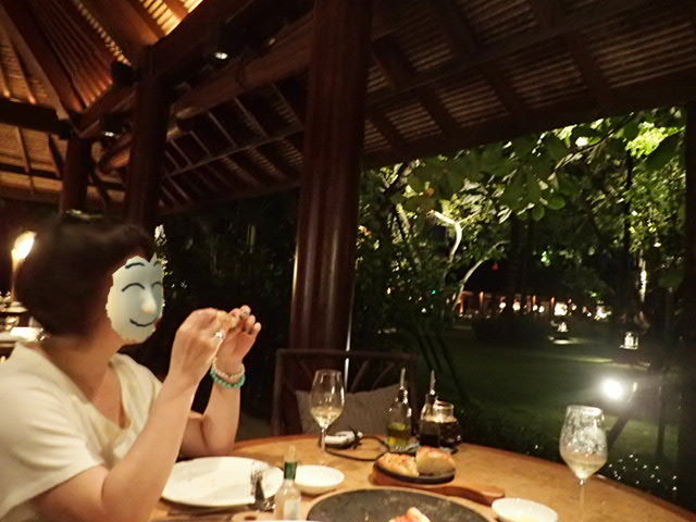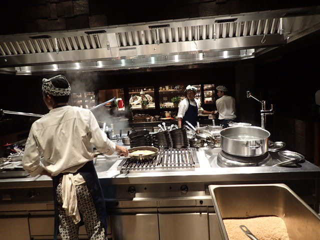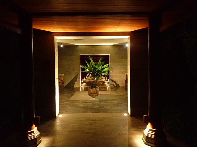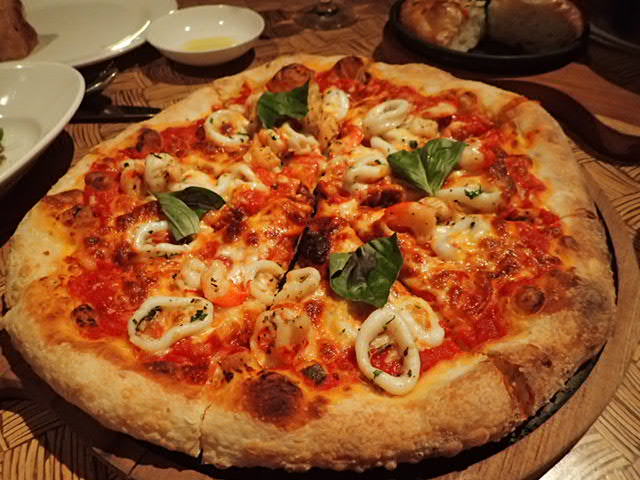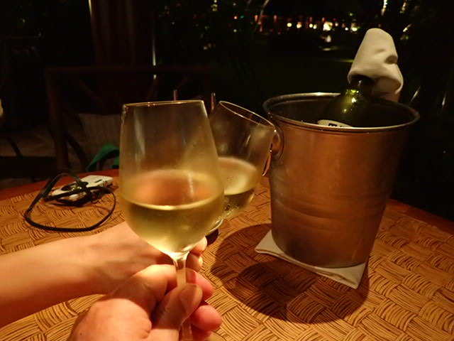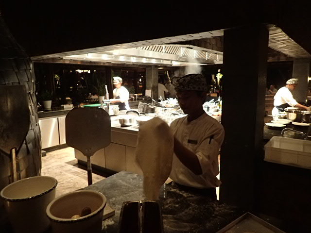 3月バリ:最後の夜はホテルのイタリアンレストラン♪3月渡バリの最後の夜はどこで食べようかと思ってたらものすごいスコール! やみそうにないのでホテルのイタリアンレストランに決定♪ 傘さしてても濡れそうなので、客室から通路を通って・・・ レストラン伝いにイタリアンレストランに・・・ さすがにこの大雨じゃこのレストランも空いてる イタリアンじゃやっぱりワインでしょうか 急に決めた渡バリだったけど楽しめました また来れるようにと乾杯! こちらのレストランは奥のスペースがオープンキッチンになっています みんなテキパキと動きが良いですね 一番奥にピザ窯があってピザ生地作ってます 突き出しのフォカッチャ オーダーしたのはツナのカルパッチョ こぱうだーの大好きなピザ、今夜はシーフードピザ にしました パスタはメニューにはなかったんだけどペペロンチーノが大好きなので リクエストしたのが牛肉入りのアーリオ・オーリオ とても美味しかったです♪ こぱうだーも満足の様子 あぁ~おいしかったぁ ごちそうさま~♪ 食べ終わって外に出ると雨は上がってました 明日の夜は帰国の途に・・・ バリで一番寂しい夜ですかね・・・