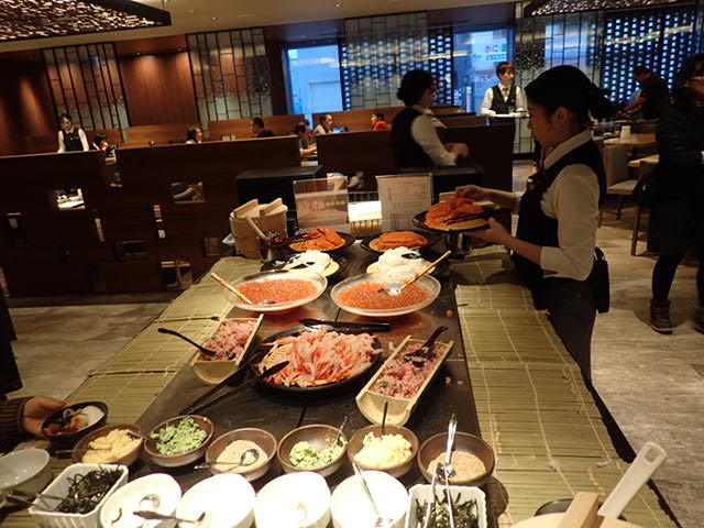 「函館国際ホテル」の大満足な朝ごはん♪お気に入りのホテルになった「函館国際ホテル」 なんと口コミで評判なのが朝食ブッフェ! 2Fにあるこちらのレストランが会場です ここのブッフェの目玉はこちらの海鮮丼のコーナー! 向こうからサーモン、イカ、イクラ、甘エビ、マグロ・・・ のせ放題、食べ放題なのだ! 人垣で手が伸びてくるのでアップの写真が撮れませんでした(笑) ずっとこんな感じね・・・(汗) こぱうだーの鮭親子丼です♡ 空港のレストランで頼むより食べがいがありますよ そのほかのメニューもたくさん揃ってて大満足です プレートに乗っけきらないの和食系 ハム&ベーコンのコーナー ブブール(お粥)もあります そして実演コーナーでは・・・ エッグスタンドの隣では、なんと朝からステーキ♪ 本場中国風の本格的な麻婆豆腐 函館ラーメンも楽しめます♪ もちろん食っちゃってますけどね こぱ両親も大満足! 朝からガッツリ食いまくりのぱうだーであった♪ なんたって海鮮丼にステーキ・・・ おかわりは北海道名物スープカレー! デザートもたっぷりあります フルーツとヨーグルト・・・ ヨーグルトにミルクプリン♪ 部屋に帰るときにはこちらでコーヒー持ち帰りもできちゃいます! いやぁ〜サービス満点の朝ごはん ごちそうさま〜♪
