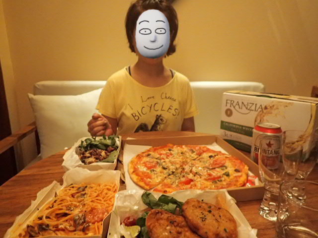 晩ご飯はピザを部屋飲みしながら食べるんだと一人で買いに出かけてしまいました