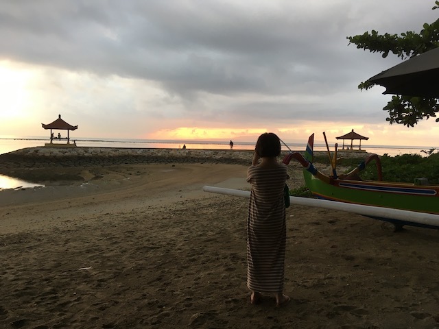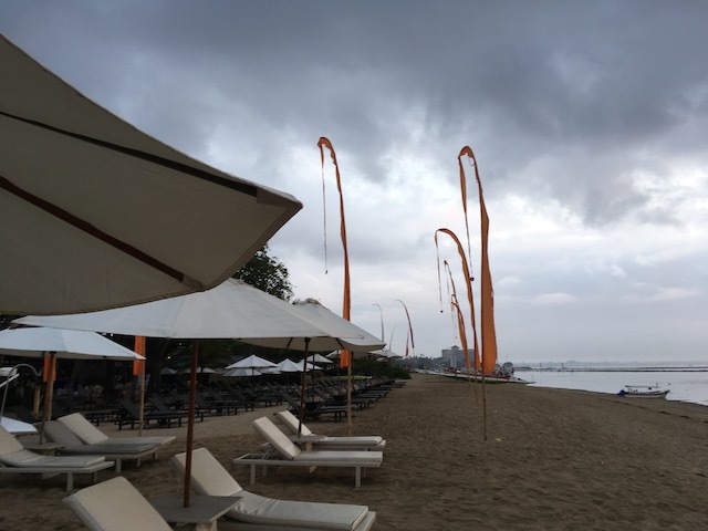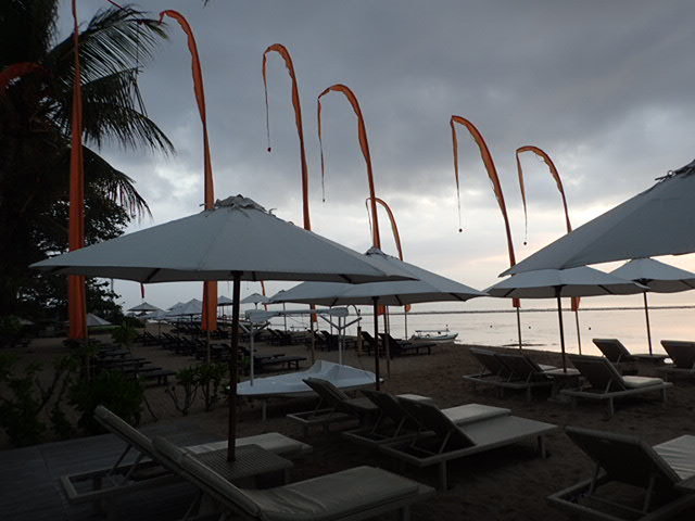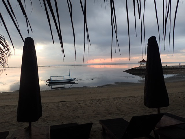 サヌールといえば朝散歩♪サヌール泊で欠かせないのが朝散歩♪ 今回も早起きしてビーチの遊歩道で朝散歩にやってきました・・・が どうよこのどん曇り(涙) 昼間の賑わいが嘘のようにひっそりとしています なんとなく朝焼けっぽくなってきてるけど・・・ 雨が降らないだけマシってとこでしょうかね 遊歩道を駆け抜ける人も少なめです とりあえず、朝焼けってことで・・・ 朝方曇ってはいましたが昼間はいい天気でした(良かった!) さてさて朝飯でも食いに行こうぜ♪