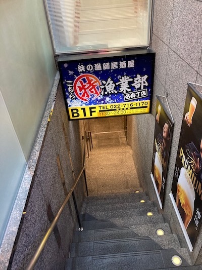 GoTo travelで初仙台:居酒屋「まる特漁業部」♪仙台最後の晩御飯は海鮮が食べれる居酒屋にしようと こちらのお店にやってきました・・・ 入り口がわかんなくなりそうな看板の多さ! ちゃんと階段がありました(笑) 浜の漁師居酒屋「まる特漁業部」 やってきた甲斐があったGoTo仙台に乾杯! お通しになります・・・一口食べて 昨夜、お昼と美味しかったけど・・・ちょっと失敗したかも 「イカ玉」・・・普通のわさびでよかったな エビ焼き・・・プリプリでした 昨夜気に入ったので鯖もいっちゃいました 海鮮グラタン そしてメインは白夜のが美味しすぎてまた頼んじゃいました 「鴨セリ鍋」・・・今度は鴨です♪ 最後は雑炊ではなくうどんにしてみました 途中お店のスタッフがサービスのエビを配ってましたよ♪ ごちそうさまでした♪