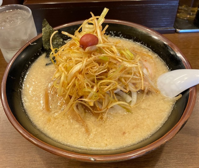 らぁめん「末廣」♪先日、練馬に行ったついでにこちらのラーメン屋さんに寄ってきました 「本格らぁめん 末廣」 初めてだったのでオススメの「玄海/こってり/ネギ」にしてみました うまそうなのがやってきましたね♪ ネギって青いやつかと思ってたのでびっくり 焦がしネギも好きなのでOKですけどね こってりスープとよく合う麺 スープ飲み干したのは久しぶりでした あ〜おいしかった ごちそうさまぁ〜♪