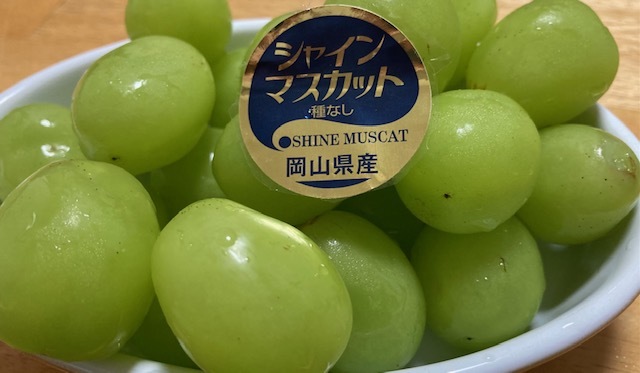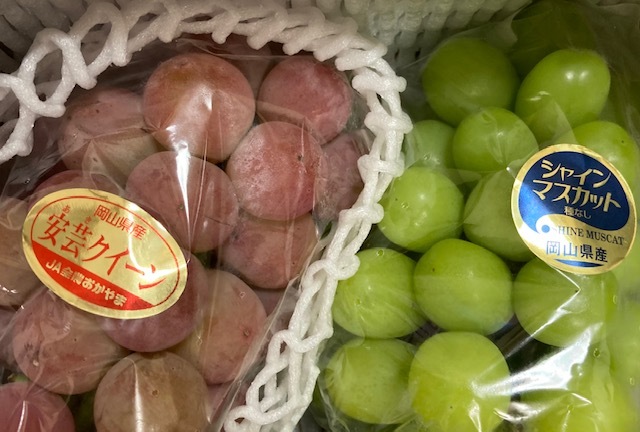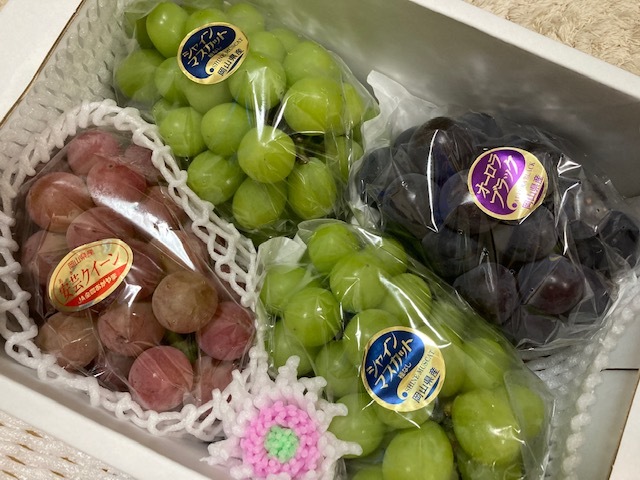 夏の味覚いただきました♪ 週末、ヤマト運輸さんがお届けものを持ってやってきた! 広島の親友タケくんから今年も今年も葡萄が届きました 岡山の葡萄の里・・・ 今年は雨が多くて大変だったようですが こんなに立派に育っていました 嬉しい〜♪ 「シャインマスカット」に「安芸クイーン」 「オーロラブラック」 どこに行っても果物売り場のメインを飾ってる 「シャインマスカット」 いやぁ 味濃いわぁ♡ タケくん、ありがとう♪
