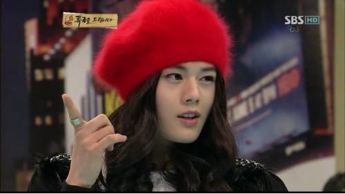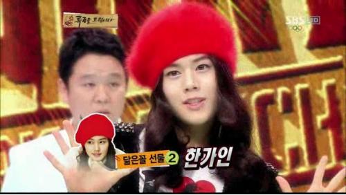 この番組はタレント20人と芸能部記者20人がトークを繰り広げるというもの。キム・ドンジュンは「特ダネ提供します」コーナーでハン・ガインに変身してみせ、出演者全員を仰天させた。ロングヘアのウィッグに真っ赤なベレー帽、ミニスカートというコスチュームで、ハン・ガインとの「シンクロ率」は100%。しかも、上半身の服を脱ぎ、女装とはミスマッチな割れた腹筋と逆三角形の胸板まで披露、大歓声を浴びた。司会のキム・ヨンマン、キム・グラ、シン・ジョンファンは「信じられない」と絶叫、芸能部記者20人も「これは特ダネ!」と、キム・ドンジュンの変身ぶりに拍手を送った。