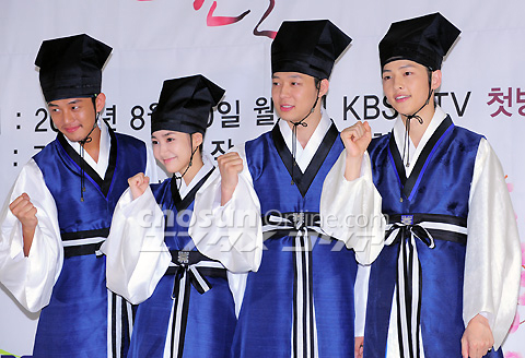 『成均館スキャンダル』の主人公たち 15日、京畿道華城市長安面のセット場で、『成均館スキャンダル』(KBS第2)のポスター撮影現場公開・記者懇談会が行われた。写真は、フォトタイムに応じる主演俳優たち。 イ・デドク記者