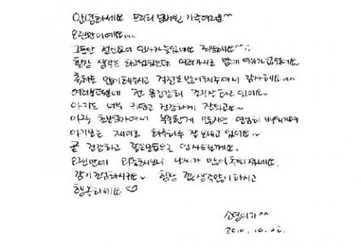 女優コ・ソヨンが、ママになったうれしさを直筆メッセージでファンに伝えた。
