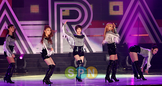 25日午後、88体育館(ソウル市江西区登村洞)で、ケーブルチャンネルMnetの『Mスーパーコンサート』が行われた。写真は、華やかなステージを繰り広げるKARA。