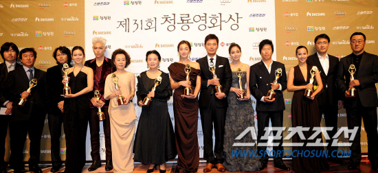 26日午後、国立劇場(ソウル市中区奨忠洞)ヘオルム劇場で、第31回青龍映画賞授賞式が行われた。写真は、授賞式を終え、フォトセッションに登場した栄光の受賞者たち。