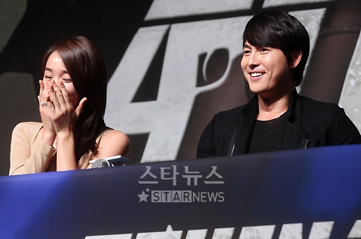 チョン・ウソンとスエが30日午前11時、シェラトン・グランデ・ウォーカーヒル(ソウル市広津区)で行われた新月火ドラマ『アテナ:戦争の女神』(SBS)の制作発表会に出席した。