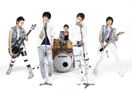 LEDAppleはジェフン(ボーカル)、ギュミン(ボーカル、ラップ)、ヨンジュン(ギター)、グァンヨン(ベース)、ヒョソク(ドラム)の5人組男性バンド。先日交通事故に遭ったギュミンは、しばらく活動を休止している。