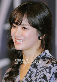 ソン・ヘギョのはにかむ笑顔=釜山映画祭 8日午後6時、新世界デパート釜山センタムシティー店(釜山市海雲台区)文化ホールで、第16回釜山国際映画祭の「ガーラ・プレゼンテーション」部門に招待された映画『今日』の記者会見が行われた。写真は、はにかむ笑顔を見せているソン・ヘギョ。 イ・デドク記者 朝鮮日報日本語版